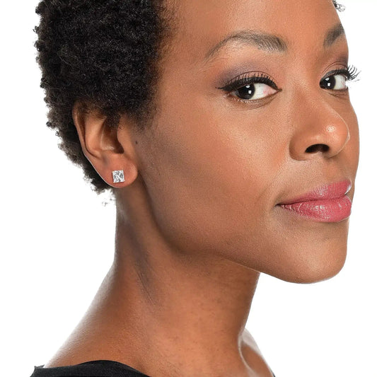 14K White Gold Square Studs