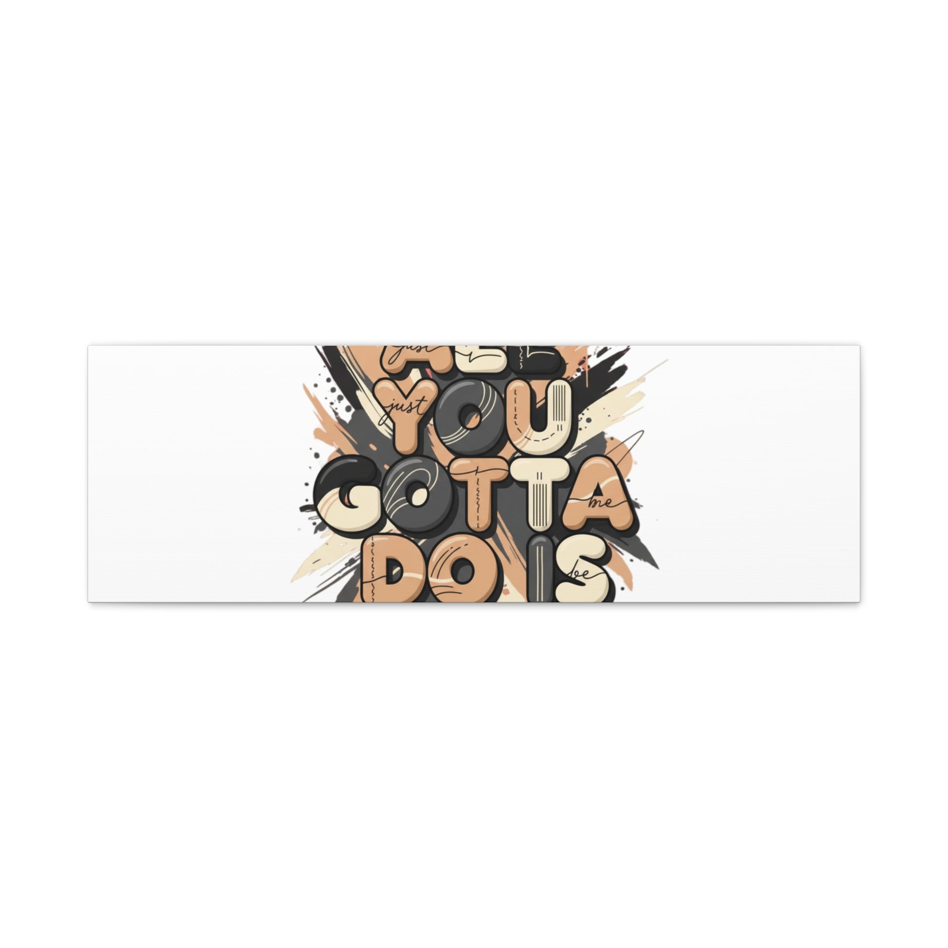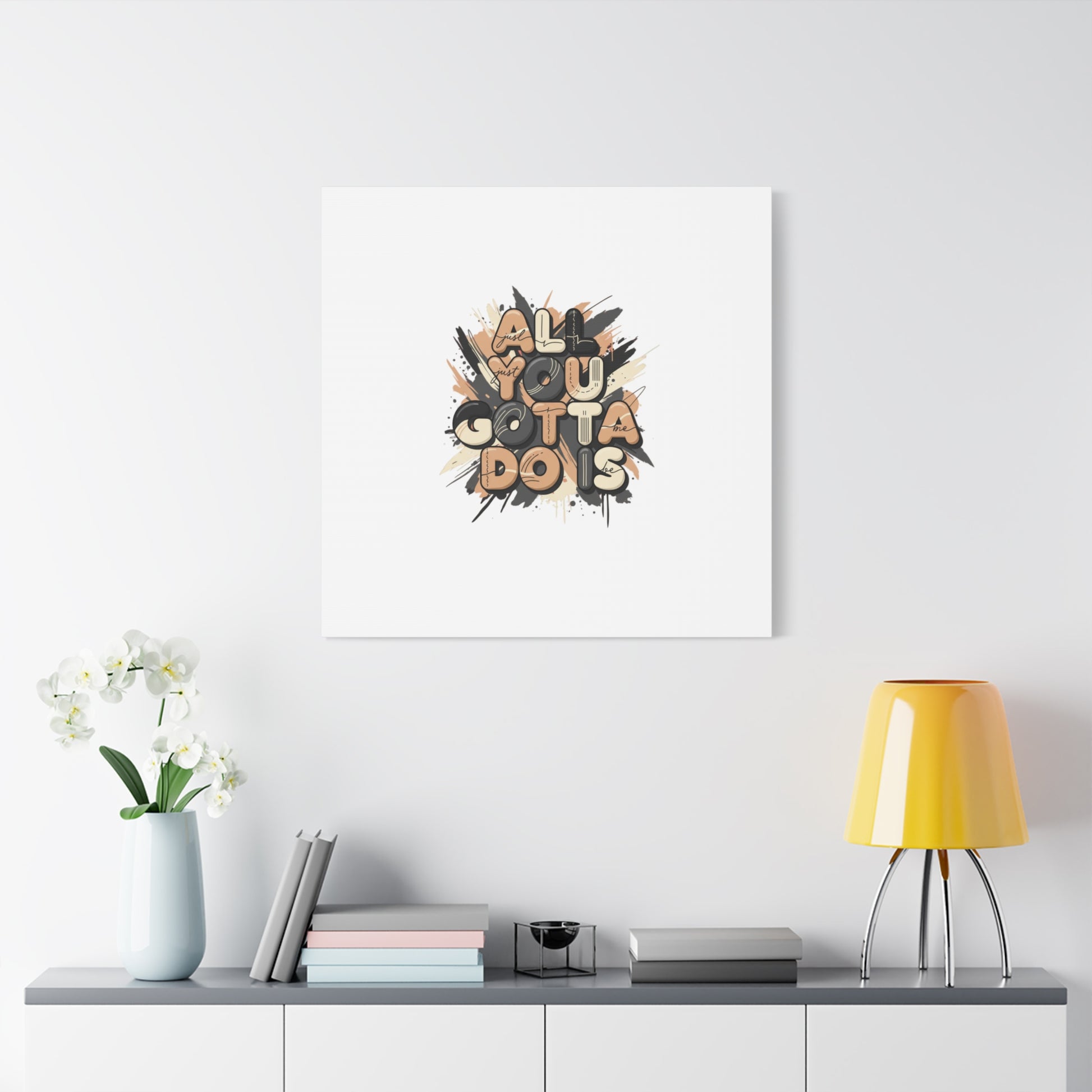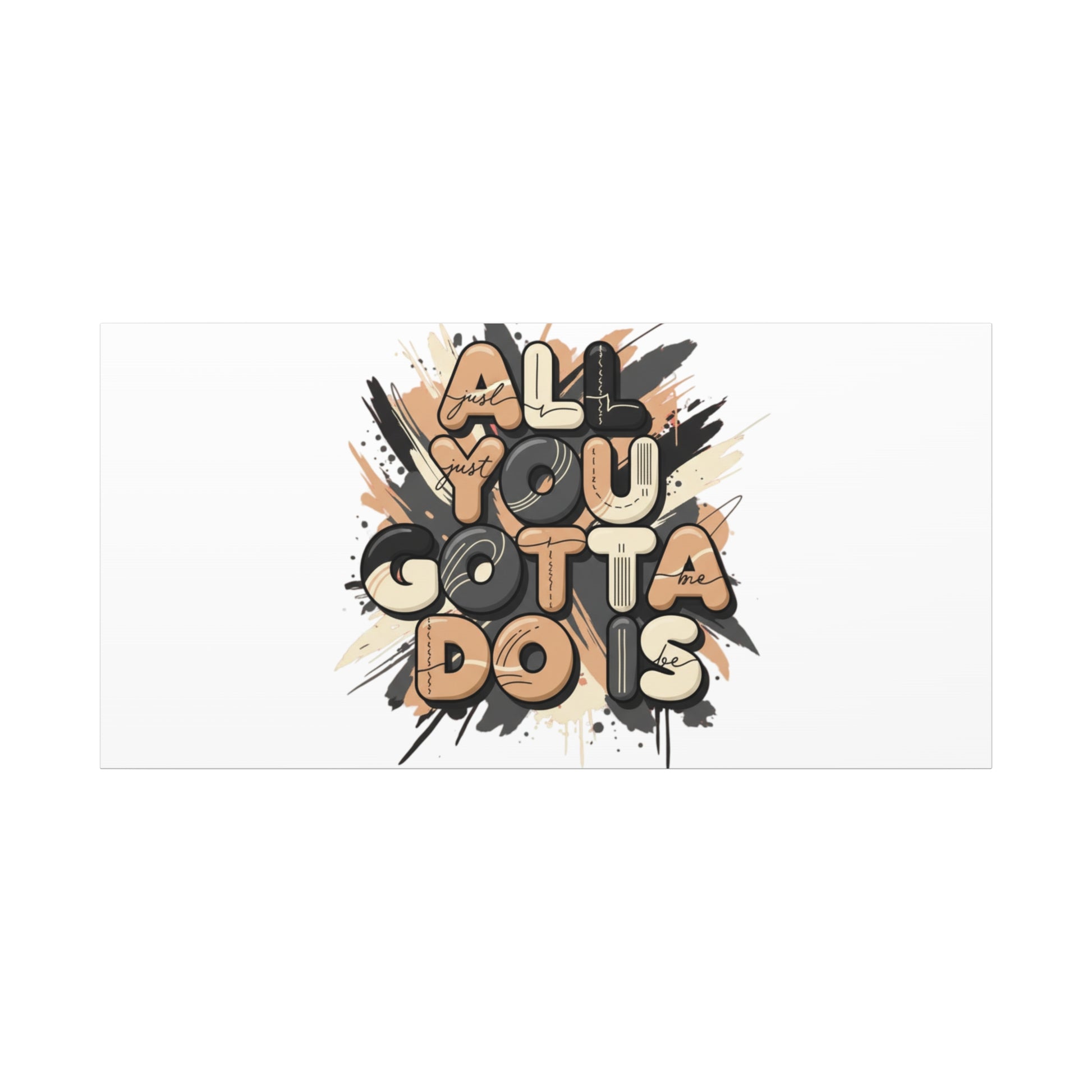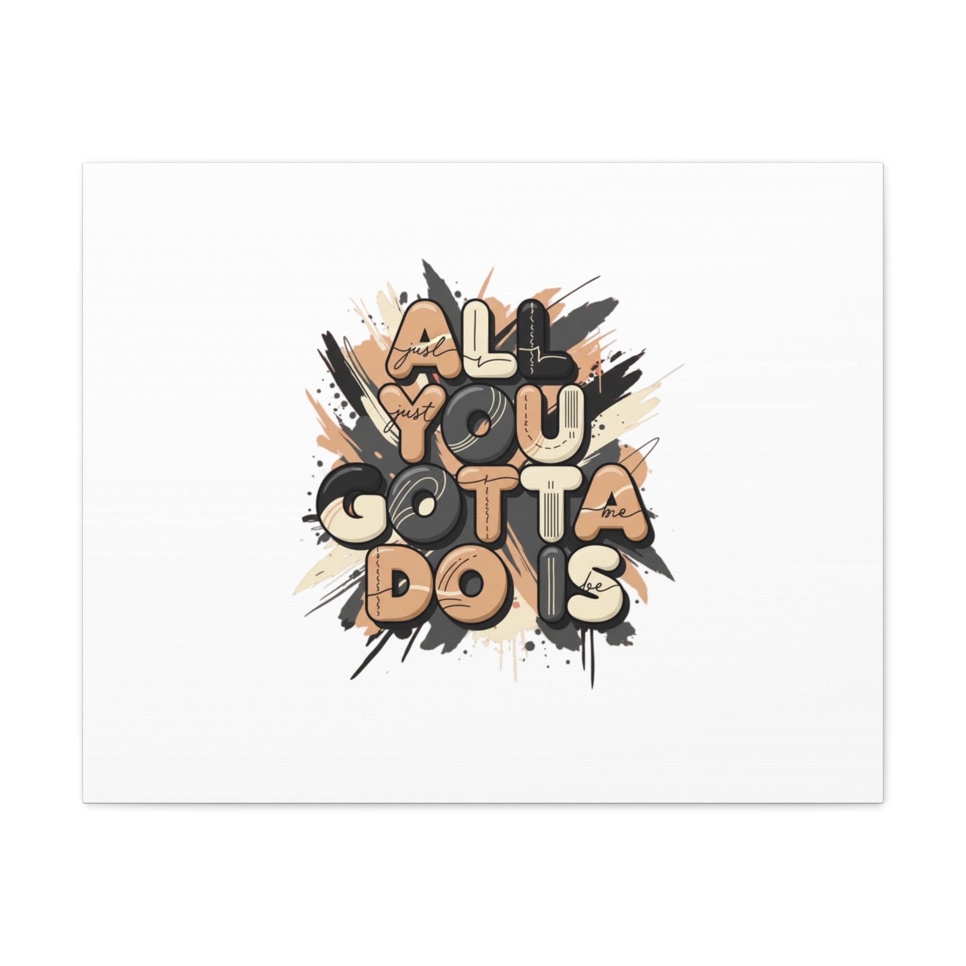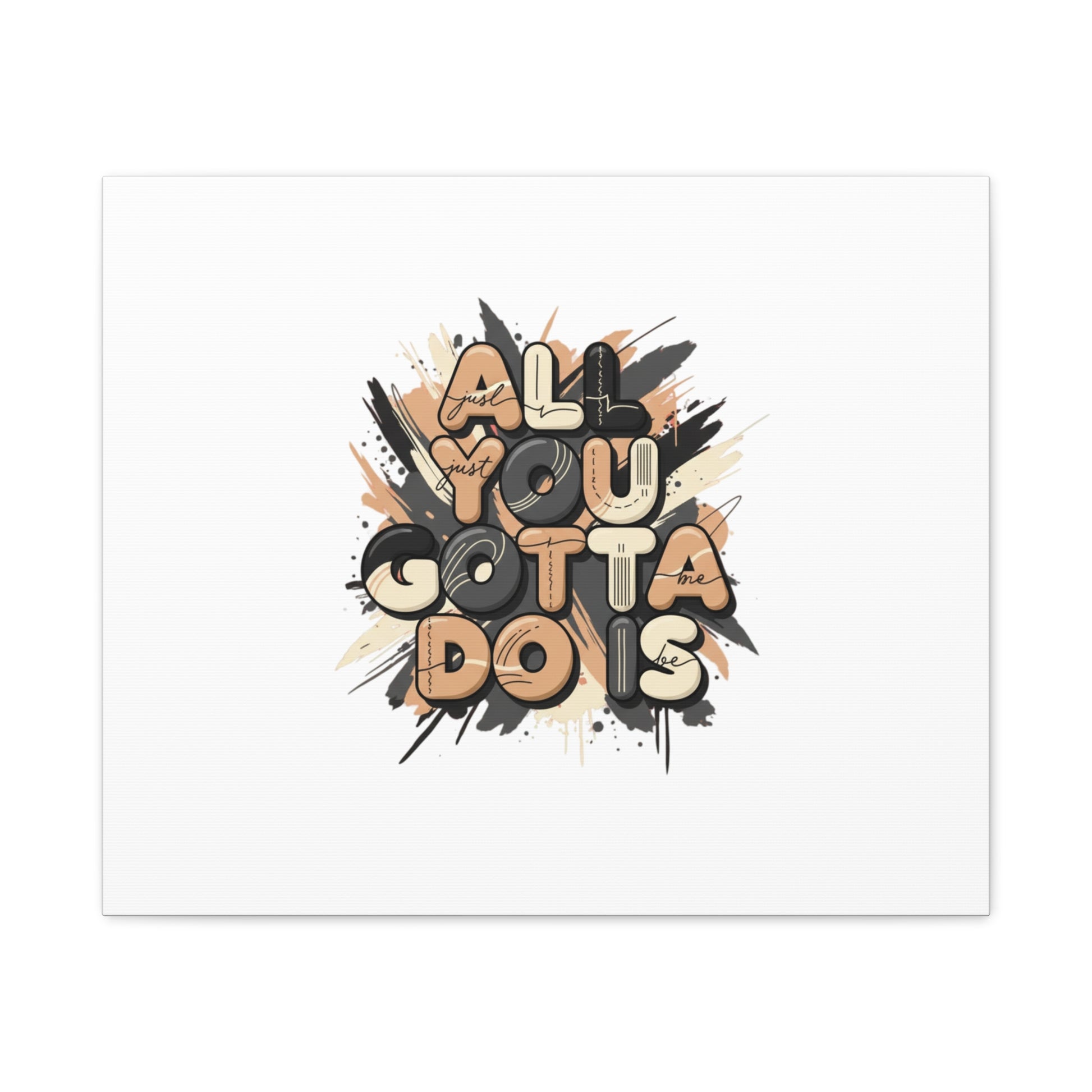 Layered, chaotic typography with a tongue-in-cheek slogan rendered in mixed, bold letterforms and paint-splatter accents — a canvas print that channels the Slogan & Nonsense Graphics trend with glitch-adjacent, internet-native energy. The artwork pairs chunky, rounded type with high-contrast ink splashes in warm beige and charcoal, creating a loud focal statement that reads like an inside joke for meme-aware viewers. Sized and stretched for wall display, it works as a statement piece in a studio, dorm, or media room where fast-moving online culture and ironic slogans are part of the aesthetic.