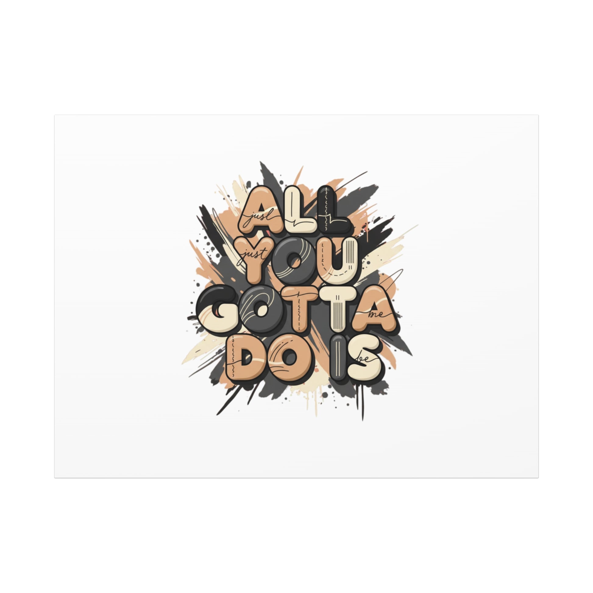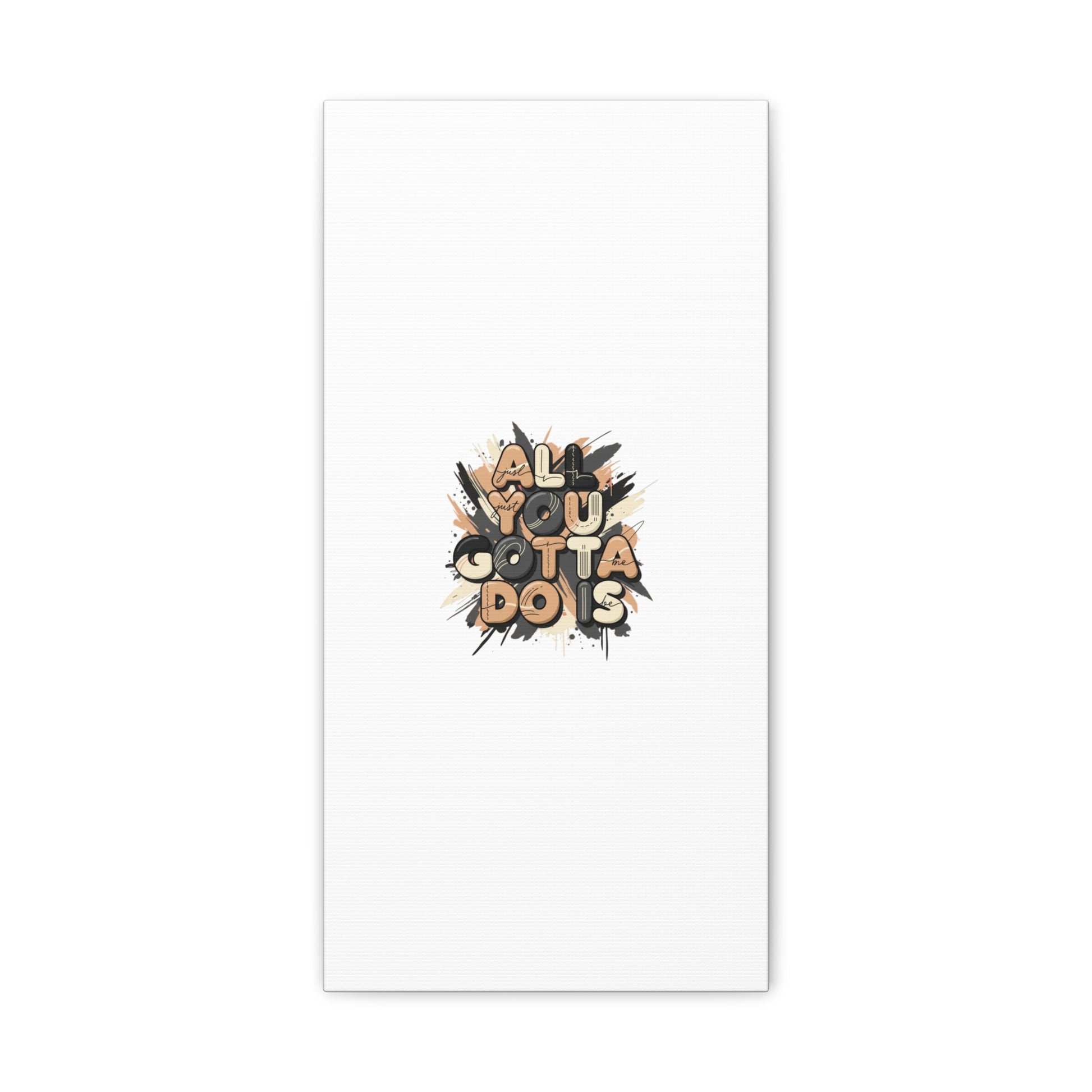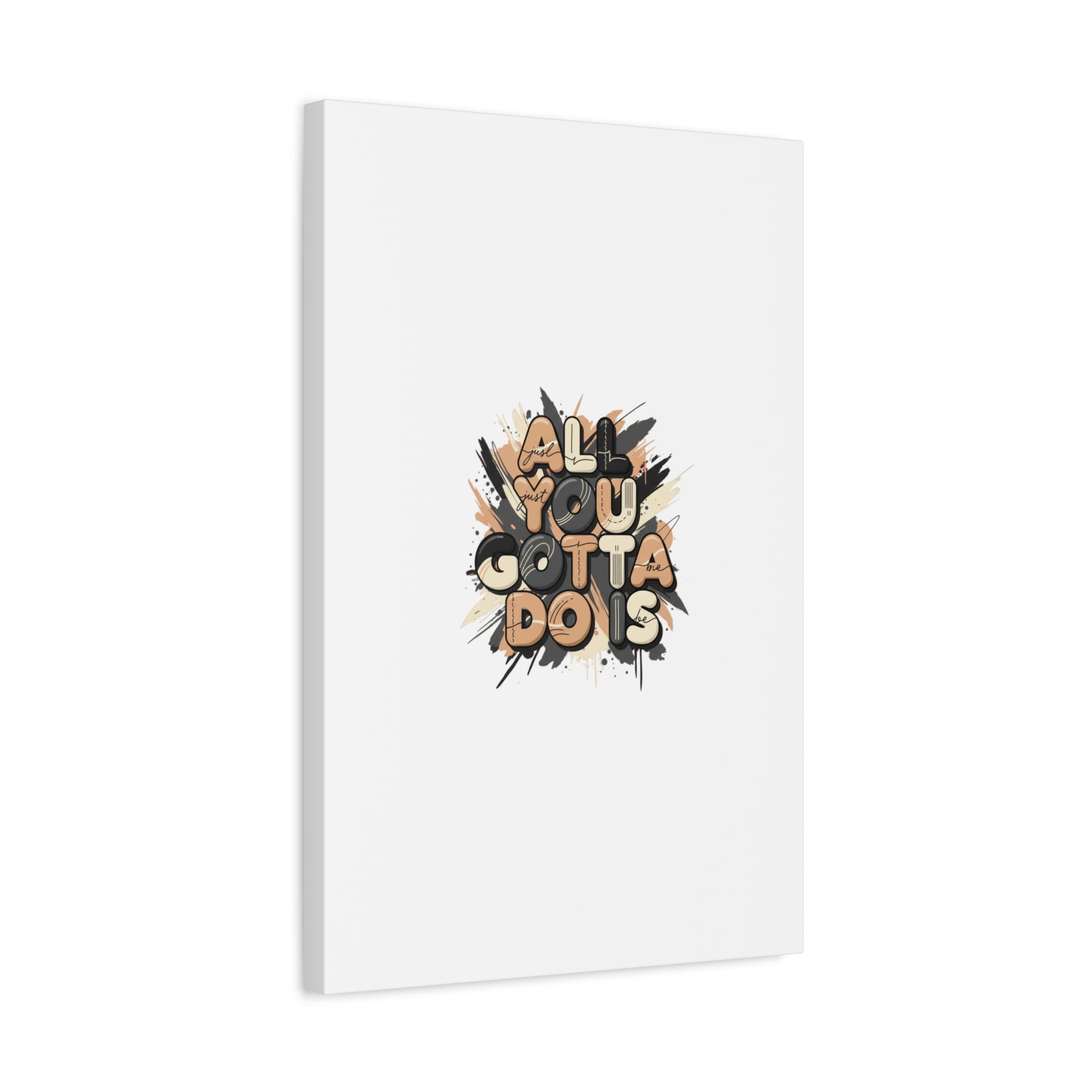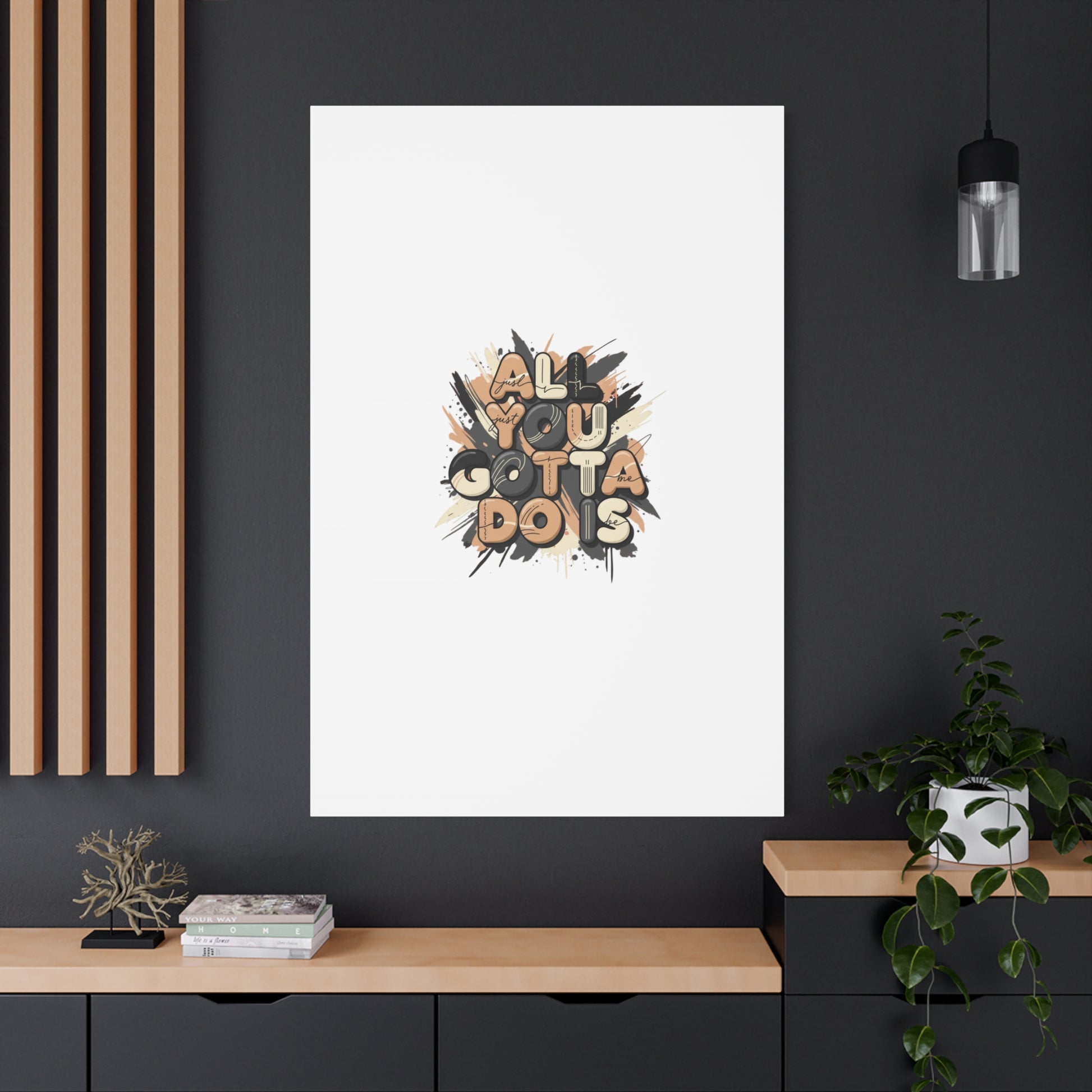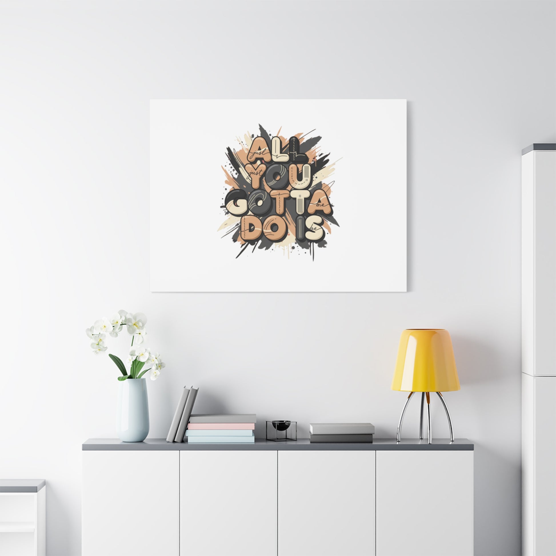 Layered, chaotic typography with a tongue-in-cheek slogan rendered in mixed, bold letterforms and paint-splatter accents — a canvas print that channels the Slogan & Nonsense Graphics trend with glitch-adjacent, internet-native energy. The artwork pairs chunky, rounded type with high-contrast ink splashes in warm beige and charcoal, creating a loud focal statement that reads like an inside joke for meme-aware viewers. Sized and stretched for wall display, it works as a statement piece in a studio, dorm, or media room where fast-moving online culture and ironic slogans are part of the aesthetic.