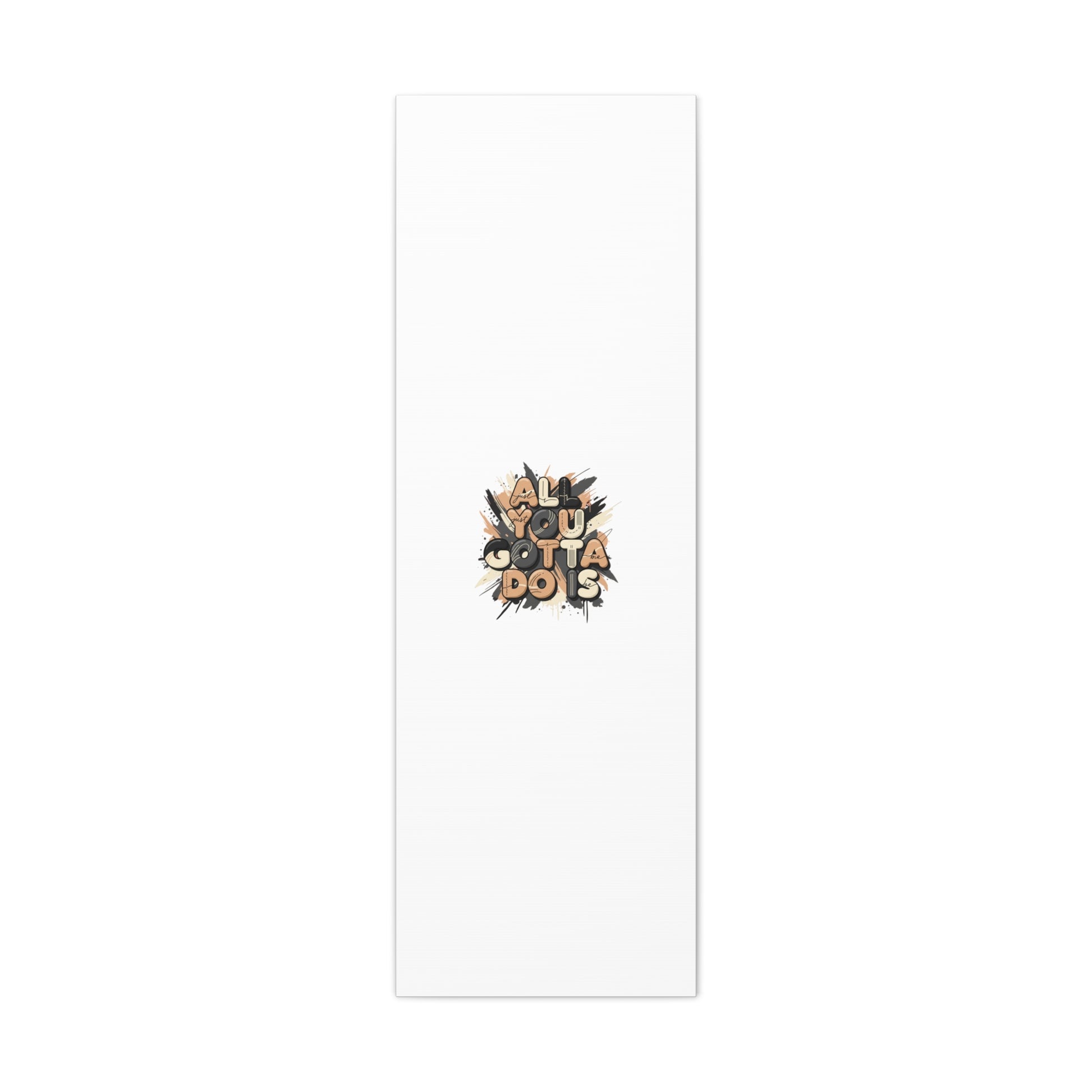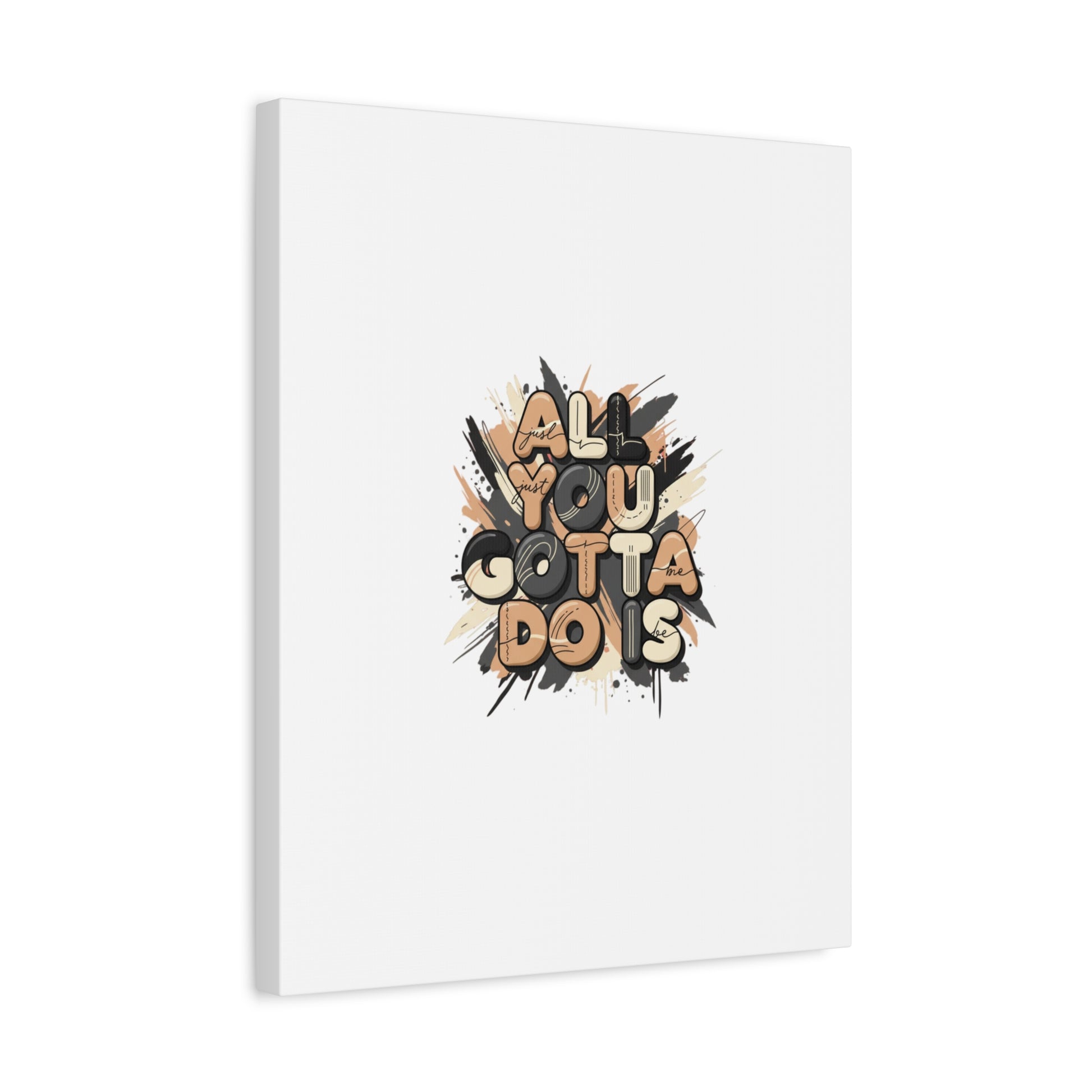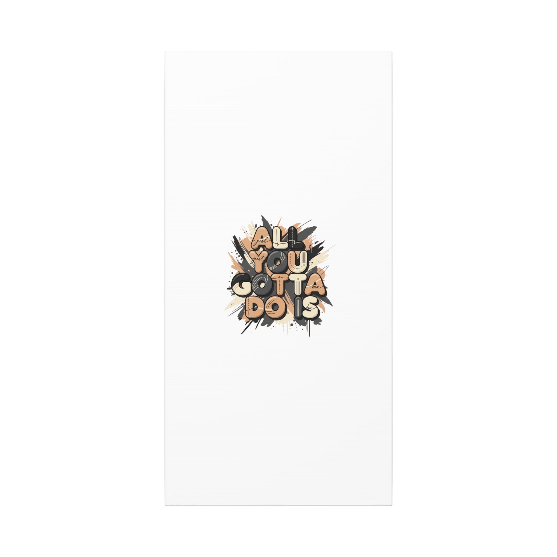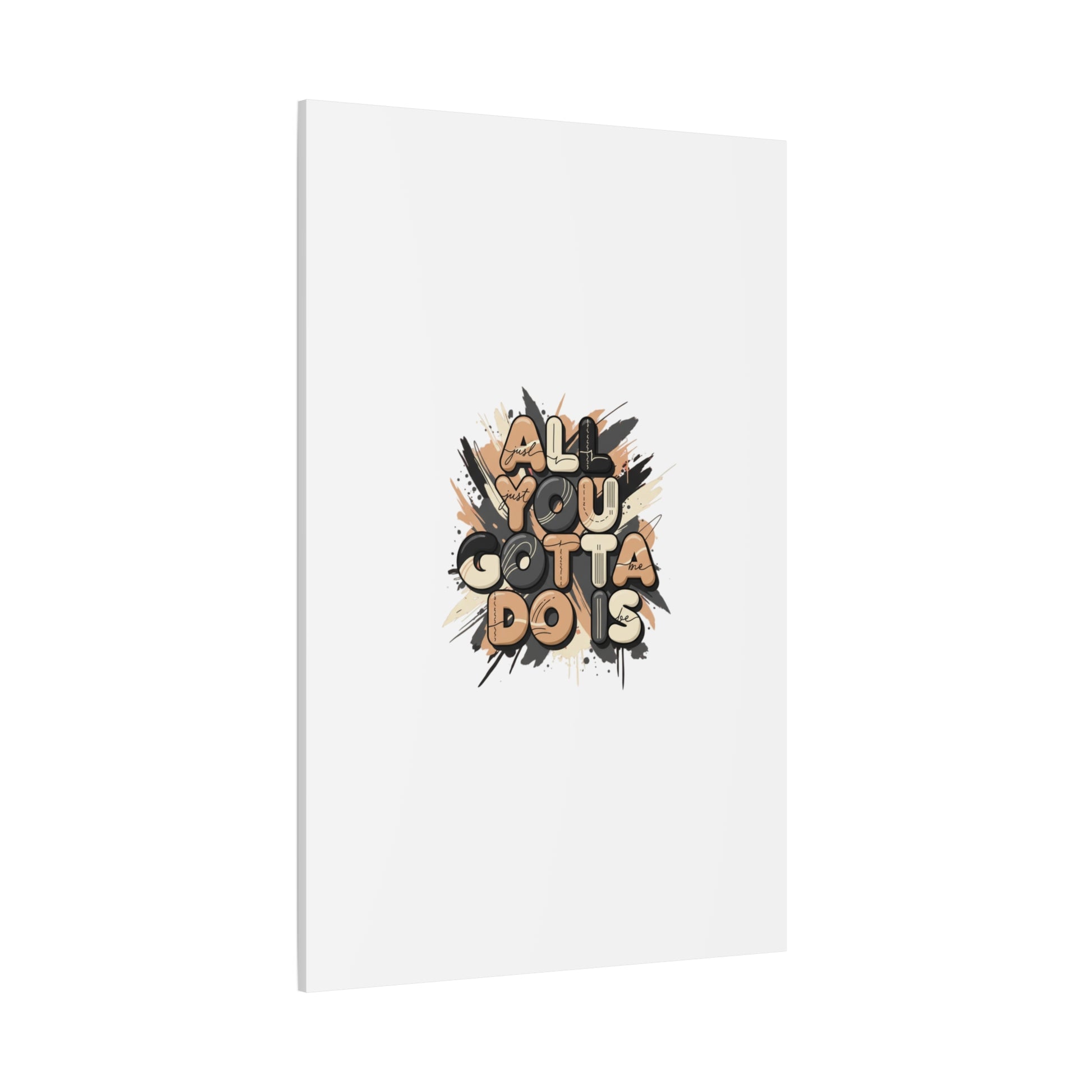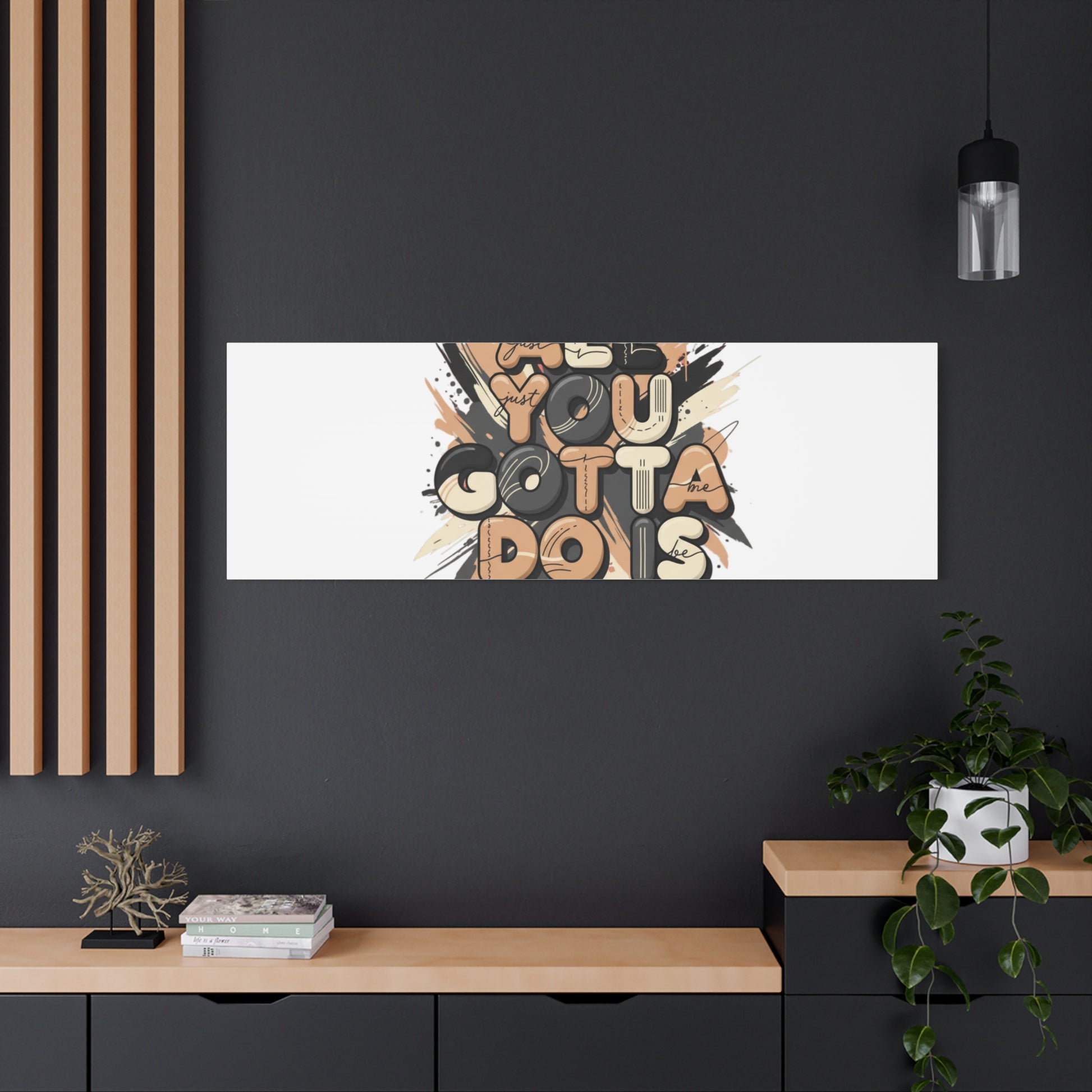 Layered, chaotic typography with a tongue-in-cheek slogan rendered in mixed, bold letterforms and paint-splatter accents — a canvas print that channels the Slogan & Nonsense Graphics trend with glitch-adjacent, internet-native energy. The artwork pairs chunky, rounded type with high-contrast ink splashes in warm beige and charcoal, creating a loud focal statement that reads like an inside joke for meme-aware viewers. Sized and stretched for wall display, it works as a statement piece in a studio, dorm, or media room where fast-moving online culture and ironic slogans are part of the aesthetic.