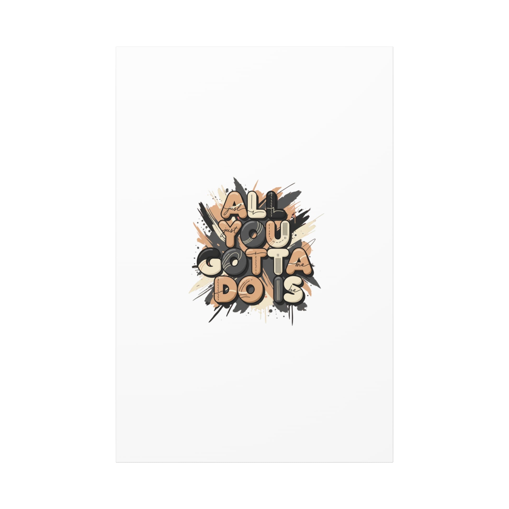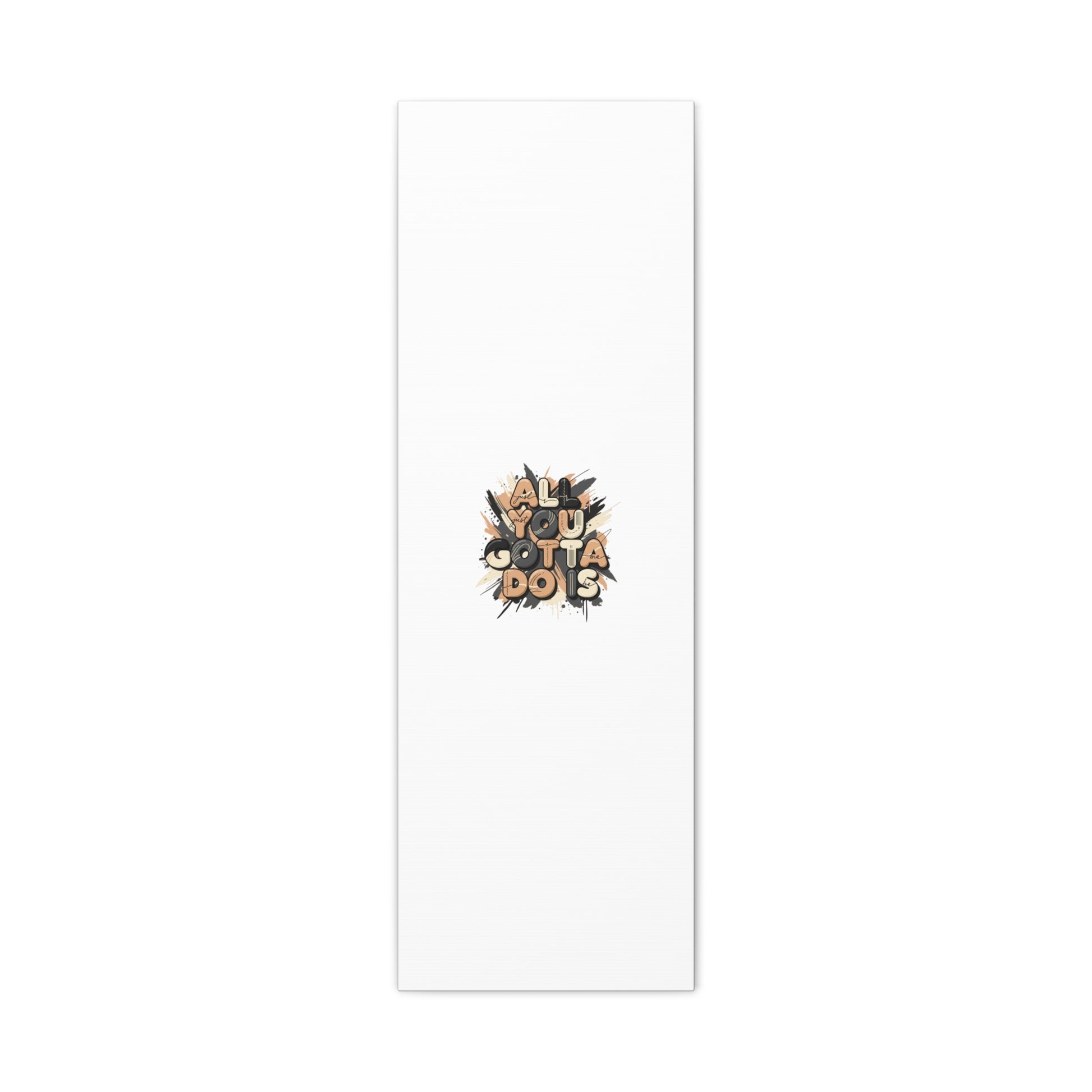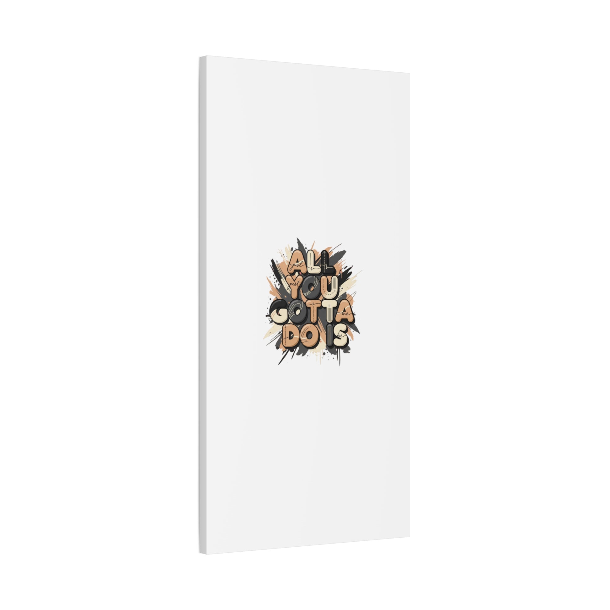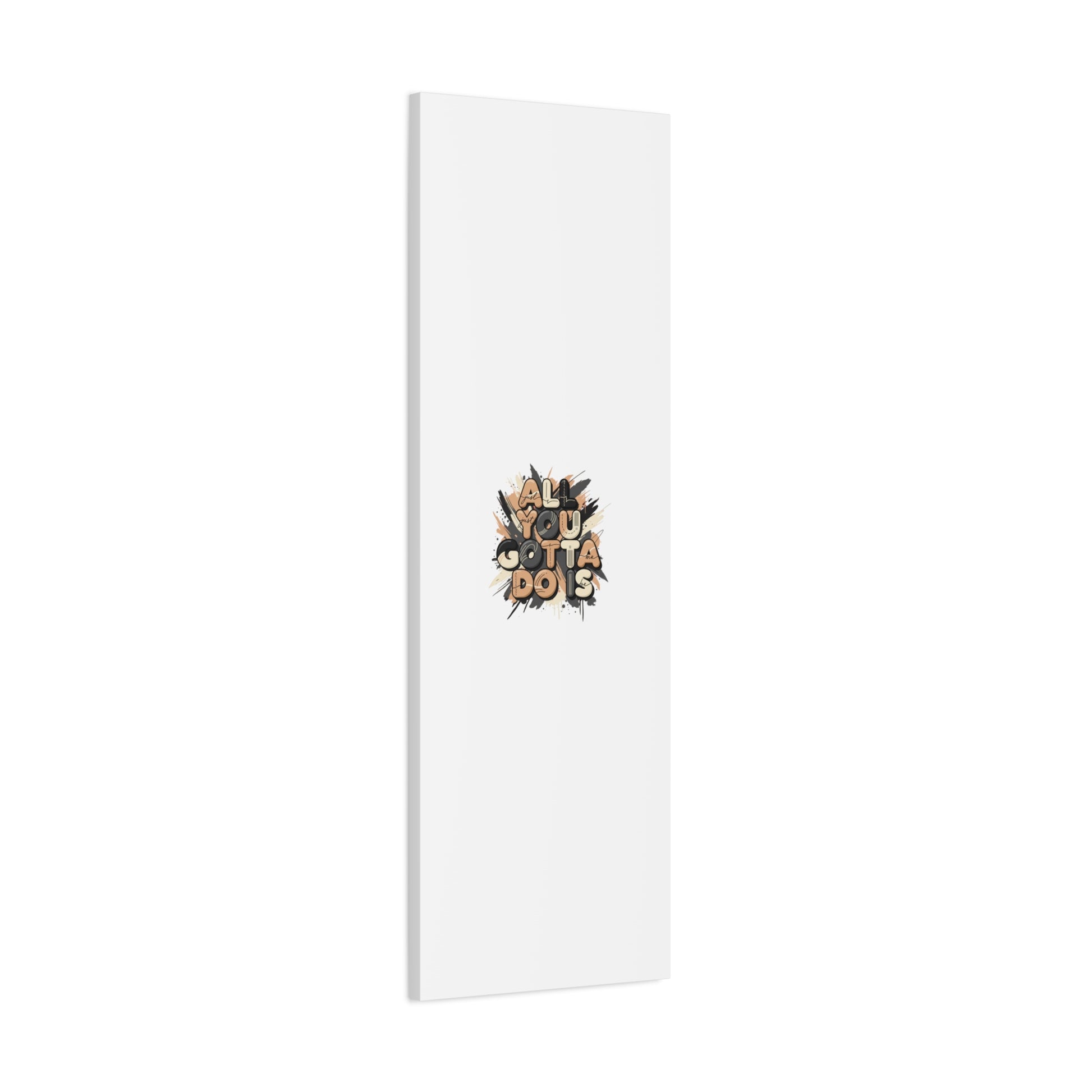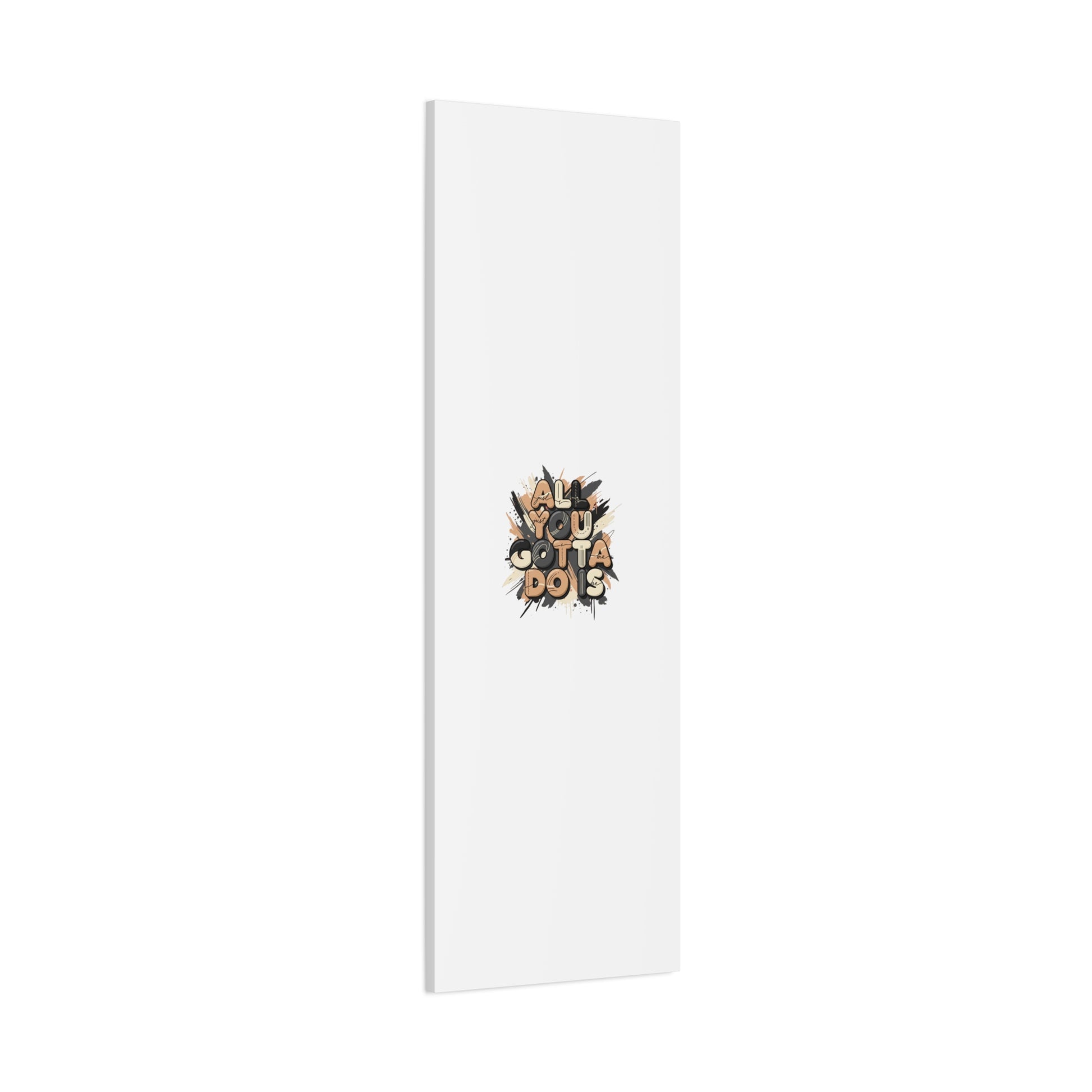 Layered, chaotic typography with a tongue-in-cheek slogan rendered in mixed, bold letterforms and paint-splatter accents — a canvas print that channels the Slogan & Nonsense Graphics trend with glitch-adjacent, internet-native energy. The artwork pairs chunky, rounded type with high-contrast ink splashes in warm beige and charcoal, creating a loud focal statement that reads like an inside joke for meme-aware viewers. Sized and stretched for wall display, it works as a statement piece in a studio, dorm, or media room where fast-moving online culture and ironic slogans are part of the aesthetic.